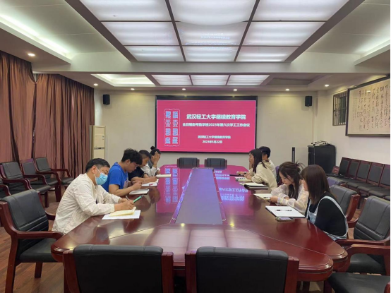 (继续教育学院 马俊玲)2023年5月22日下午,继续教育学院全日制自考助学班2023年第六次学工工作会议在继教院三楼会议室举行,会议由魏志朋老师主持,学工办主任邹向俊及全体辅导员参加此次会议。